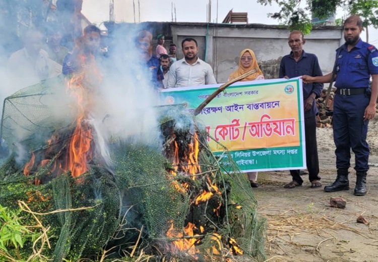 গাইবান্ধায় নিষিদ্ধ চায়না দুয়ারি জাল জব্দ