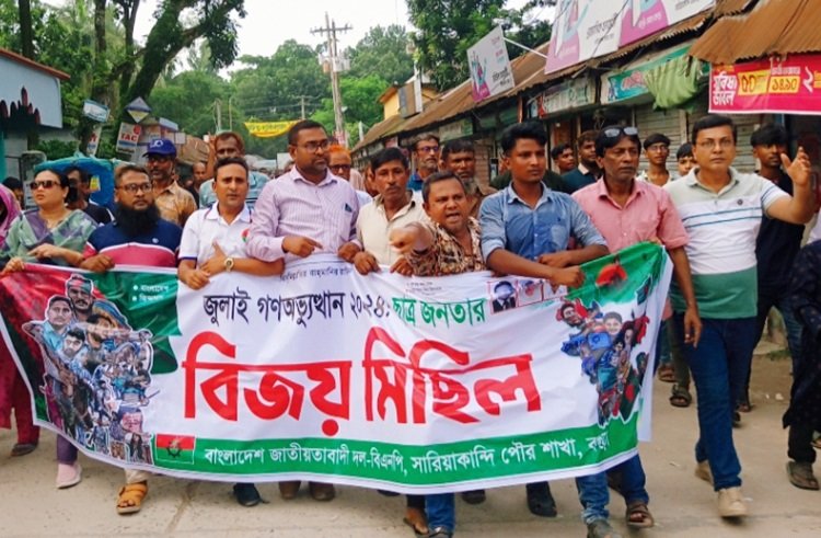 ছাত্র-জনতার গণঅভ্যুত্থানের বর্ষপূর্তিতে সারিয়াকান্দিতে বিজয় র্যালি