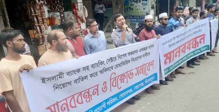 বোচাগঞ্জে ইসলামী ব্যাংকে অবৈধ নিয়োগ বাতিলের দাবিতে মানববন্ধন