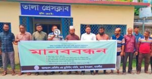 ৪ দফা দাবিতে তালায় ওষুধ ব্যবসায়ীদের মানববন্ধন