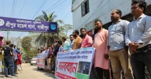 শ্রীপুরে সাংবাদিককে হত্যার হুমকির প্রতিবাদে সাংবাদিকদের মানববন্ধন