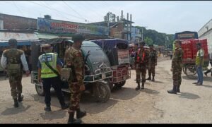 পীরগঞ্জে রাস্তায় যানযট মুক্ত করছে বাংলাদেশ সেনাবাহিনী