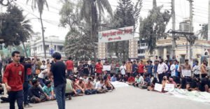 দিনাজপুরে ৬ দফা দাবিতে ডিপ্লোমা শিক্ষার্থীদের রেলপথ অবরোধ