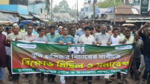 হিলিতে শেখ হাসিনার বিচার দাবি