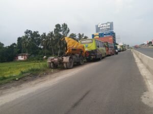 পরিত্যক্ত গাড়ির দখলে হাটিকুমরুল মহাসড়ক