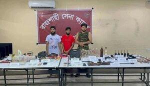 রাজশাহীতে অস্ত্র, গুলি ও বোমার সরঞ্জাম উদ্ধার, আটক ৩